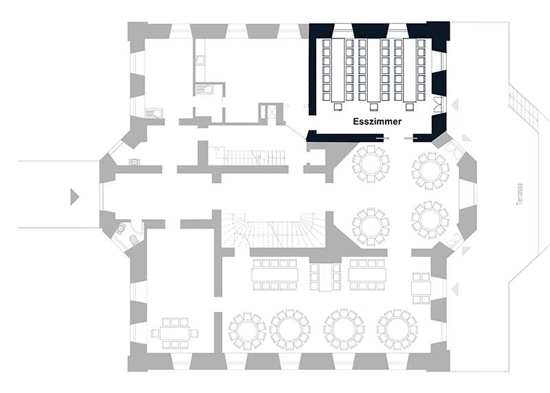 -Bestuhlung und Ausstattung der Räume mit Beamer, Leinwand, Flipchart und Pinwand
